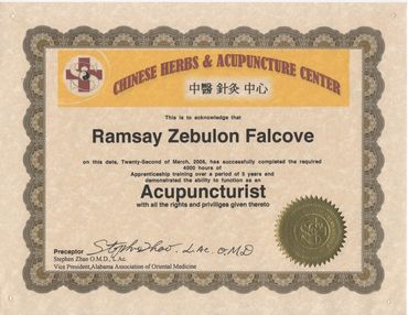 I began my study of Traditional Chinese Medicine in 2002 and apprenticed alongside a licensed acupuncturist in excess of 4,000 hours over the course of 5 years. In 2006, I received my individual certification and began independent practice.