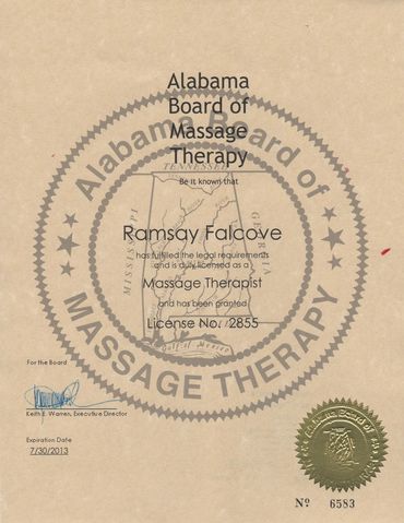 Licensed in Massage Therapy by the State of Alabama and nationally by the National Certification Board for Therapeutic Massage and Bodywork. I have practiced Yoga since 1979.