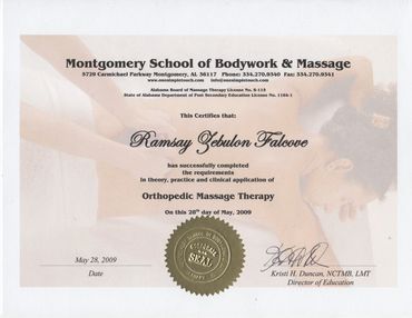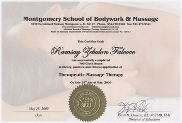 I am a graduate of the Montgomery School of Bodywork and Massage (2008); a graduate of UAB in Respiratory Therapy (1976).